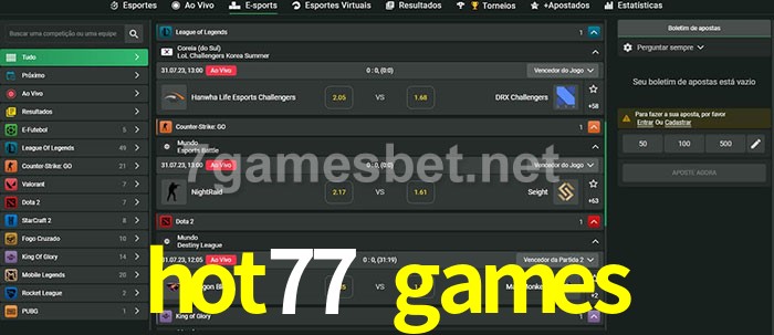 O hot77 games oferece uma grande seleção de opções de apostas em e-sports com probabilidades competitivas